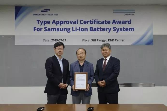 韩国媒体报道称,韩国造船企业三星重工业公司表示已经开发出一种用于船舶的锂离子电池动力系统,获得了挪威著名船社DVL-GL的认可并颁发了证书。